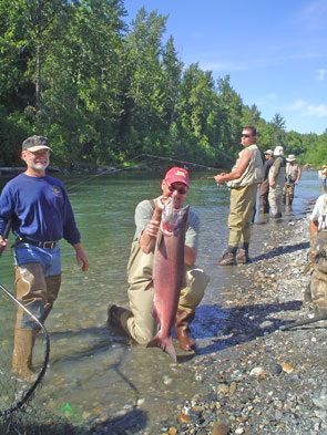Trophy Rainbow Trout swim Clear Creek from late May to early September. King Salmon run for a shorter time – from the end of June through mid-July next, Pink and Chum, then Silver Salmon in August. Throughout the fishing season Dolly Varden and Arctic Grayling can be caught. Clear Creek rushes out of the Talkeetna Mountains and flows into the Talkeetna River, just north of, you guessed it - Talkeetna. This is world-class fishing, surrounded by majestic Alaskan wilderness.